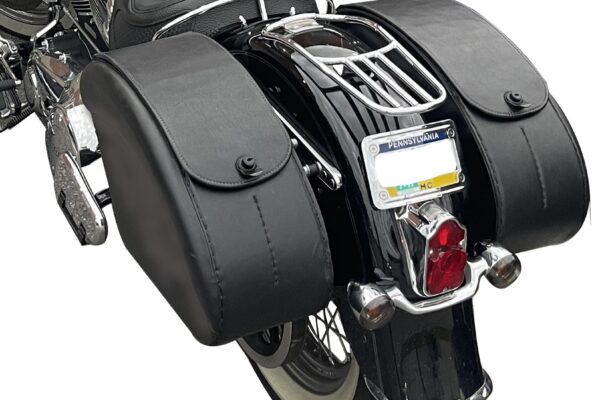 423F- Saddleline Harley-Davidson Softail Deluxe FLSTN Saddlebags With Quick Detaching Mounting.